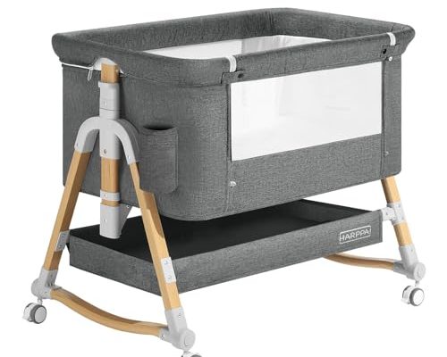 HARPPA Cuddly Bassinet, 3 in 1 Baby Bassinet, Rocking Bedside Bassinet with Wheels, 5 Height Adjustable, Includes Mosquito Net, Mattress, Anchor Strap