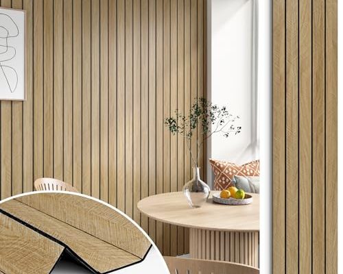 INNO STICKERS 4-Piece Wood Slat Wall Panel for Interior Wall Decor Noise Cancelling 47.2" x 23.6" Peel and Stick Acoustic Decorative 3D Sound Absorbing Wall...