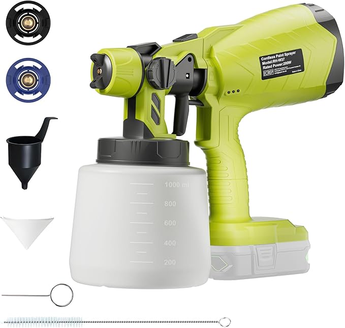 Cordless Paint Sprayer for Ryobi 18V Battery, HVLP Brushless Spray Gun with 1000ML Container, 200W High Power Spray Gun 3 Patterns, 4 Size Nozzles for Home...