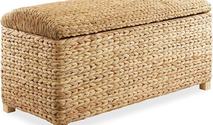 Casafield 36″ Storage Trunk with Curved Lid and Safety Hinge – Natural, Water Hyacinth Wicker Storage Chest for Bedroom, Entry Way, Living Room