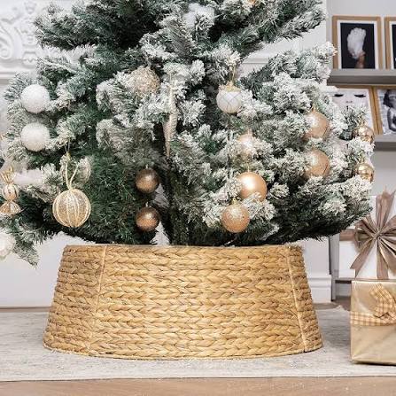 CLAYNIX Tree Collar - Large to Small Christmas Tree, 28" Christmas Tree Ring Adjustable Water Hyacinth Skirt, Christmas Tree Skirt for Decoration, Base...